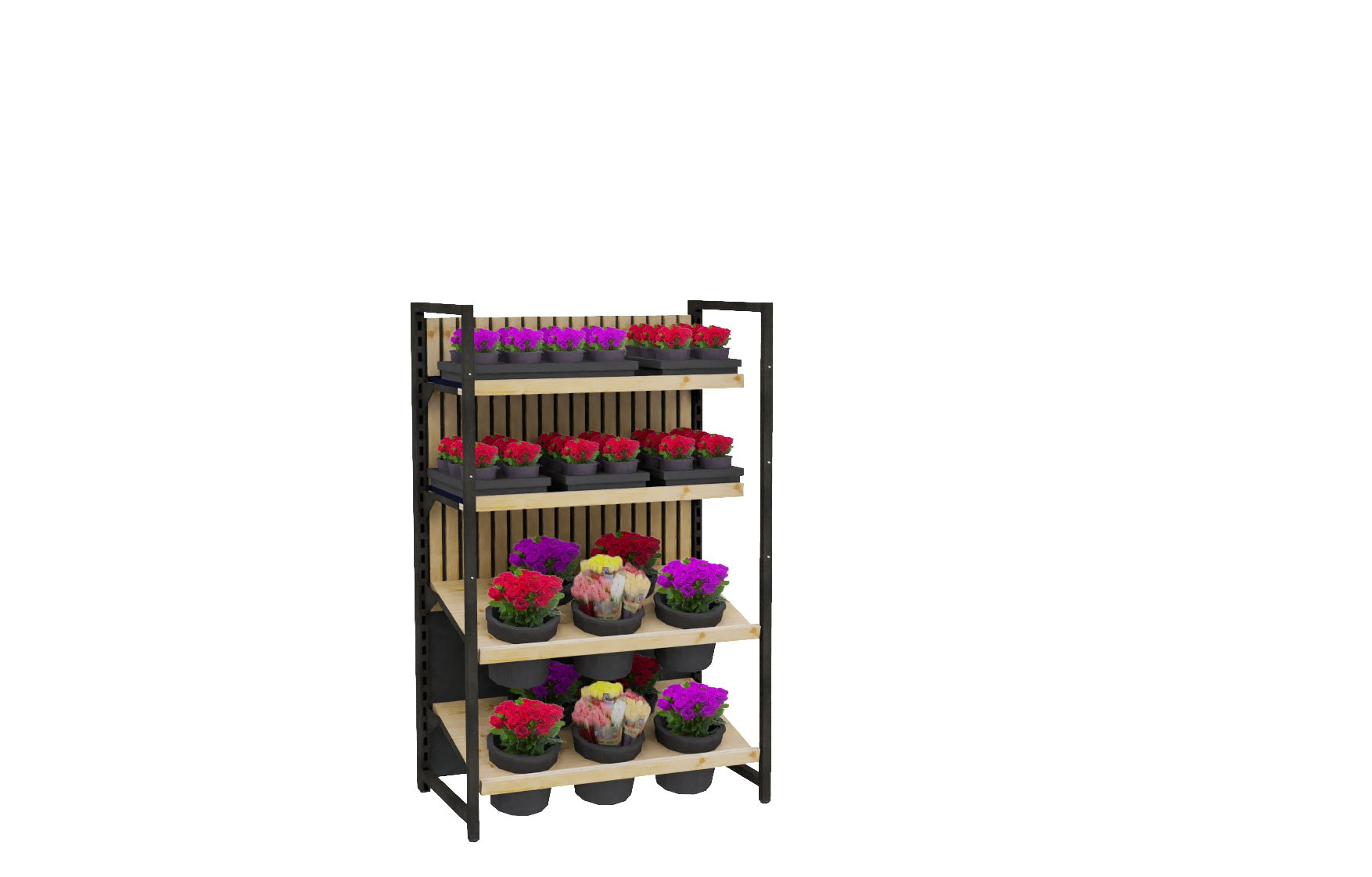 - Böden aus Massivholz, zweifach in Neigung verstellbar und jeweils mit 40 Kg belastbar