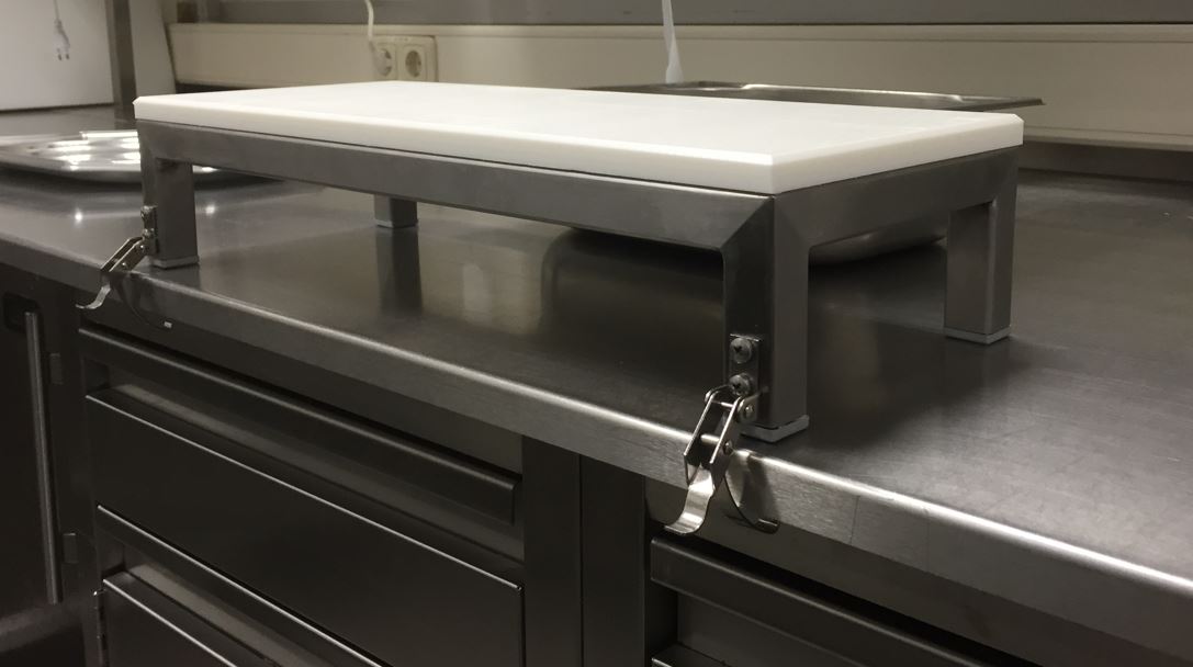 Podest mit Schneidebrett und Klemmbefestigung
